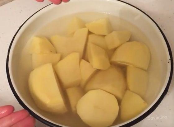 Очистите картофель и отварите его до готовности, примерно 20-25 минут. Добавьте соль за 5 минут до окончания варки.